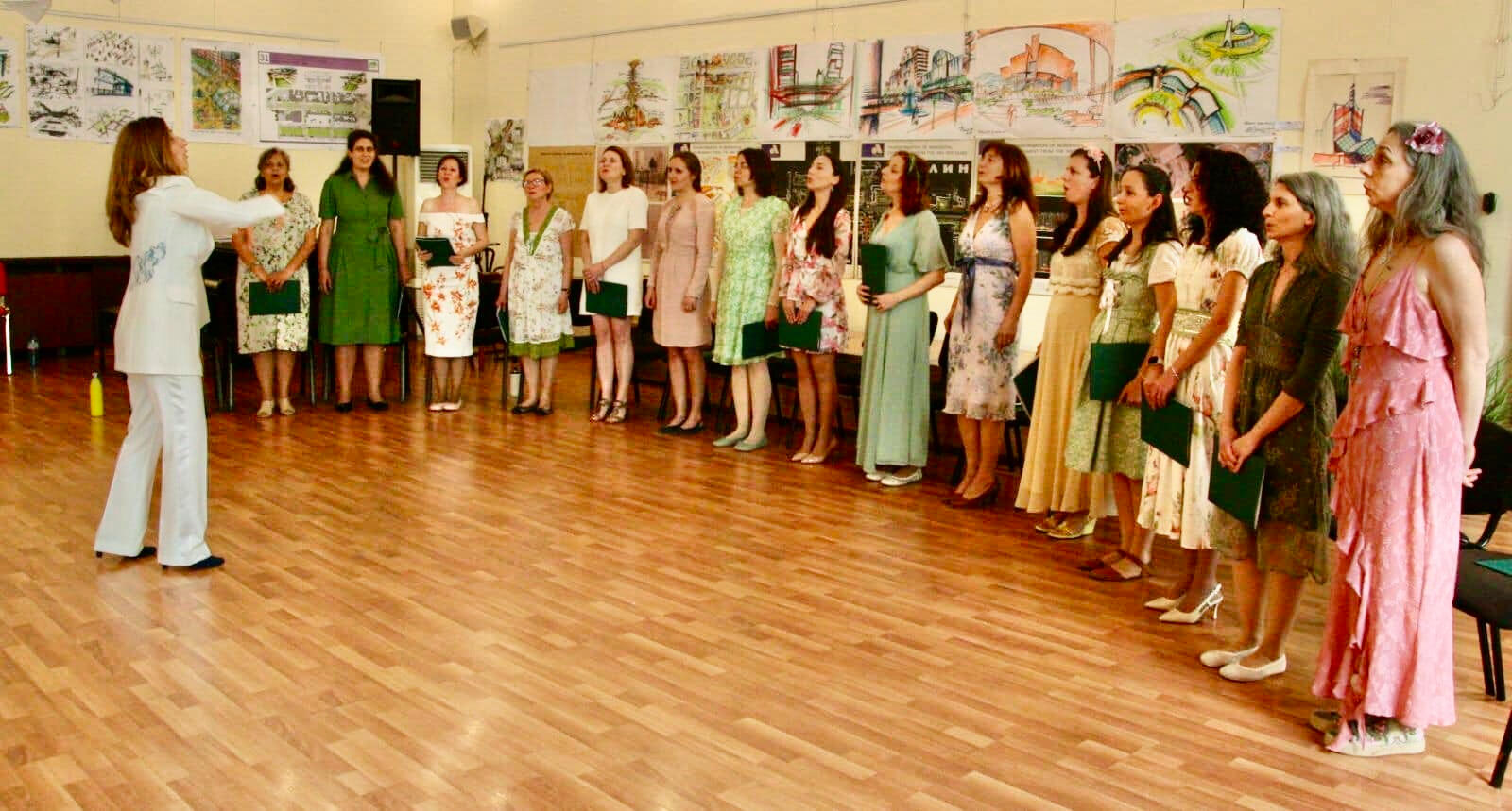 Тялото пее! Винаги посвещаваме няколко минути да раздвижим телата, да се отърсим от това, с което сме дошли и да се настроим за процеса. След това се разпяваме в рамките на 10 -15 минути, внимателно укрепвайки вокалната техника.